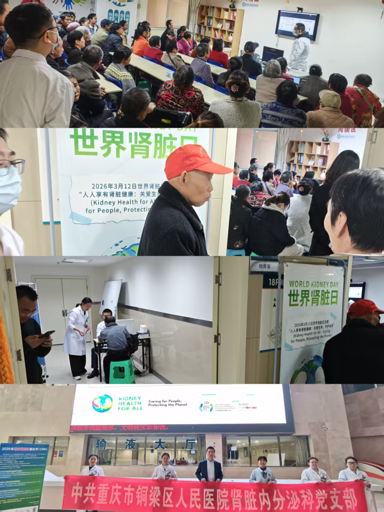 国际肾脏病学会(ISN)和国际肾脏基金会联合会∙世界肾脏联盟(IFKF-WKA)于2006年联合发启,将每年3月的第二个星期四确定为世界肾脏日(WorldKidneyDay)。2026年3月12日是第二十一个世界肾脏日。为提高公众对慢性肾脏病的认知,呼吁公众知晓肾脏病的严重危害,早筛查和重视肾脏病与环境变化的关系,重庆市铜梁区人民医院肾脏内分泌科联合重医附一院血管通路团队于今日在我院门诊大厅及肾